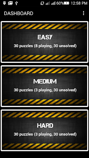 To start things of, you have 30 puzzles to choose between three difficulty modes to choose from – Easy, Medium, Hard. As and when you keep solving problems, you are informed regarding the completion of puzzles, and the ones that are still unsolved.