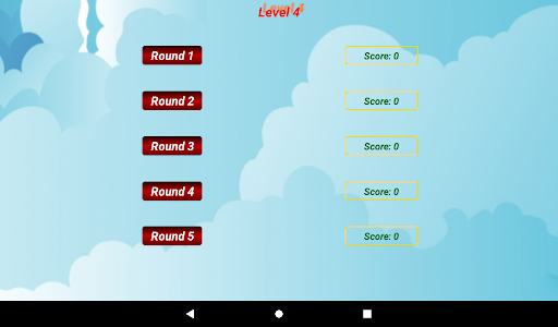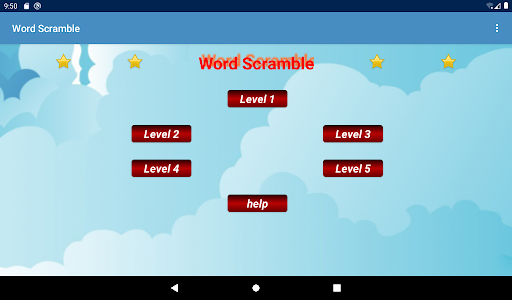 The game has 5 levels, and each level consists of 5 rounds. Each level offers 200 words, and each round offers 40 words. The levels are arranged from easy to more challenging.
