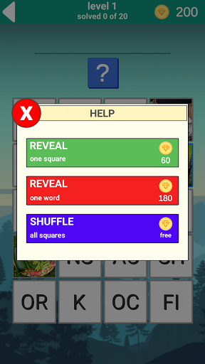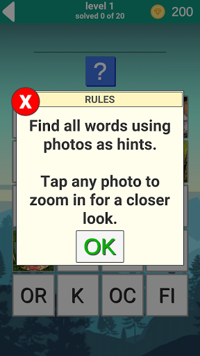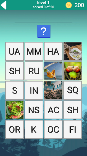 At each level, you have 20 photos available, with which you must guess 20 hidden words to complete the level. Photos are opened one at a time, and you have access to a certain number of photos.as you guess them, others will be available to you. The game is available in 7 languages: English, Russian, Spanish, Italian, Portuguese, German, and French.
