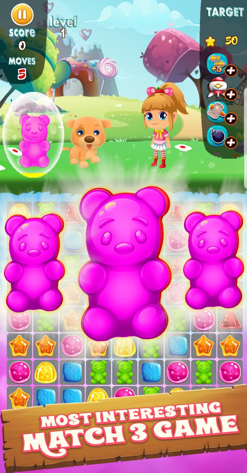★ this gummy bears game provides many different targets to win: min amount of points, limited time or moves and many more!