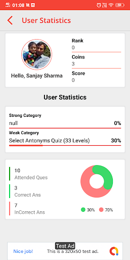 D. You can see your statistics, like how many questions you attempted, how much coins you collected etc.