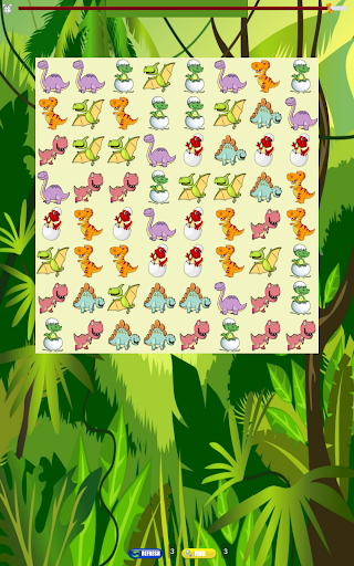 Click matching dinosaur pictures to clear them from the board before your time is up. You must pick matching pairs that are not diagonal, but side to side or on top of each other.