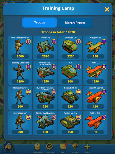 ✔ Build World War 1 barracks and produce massive tanks or aircrafts