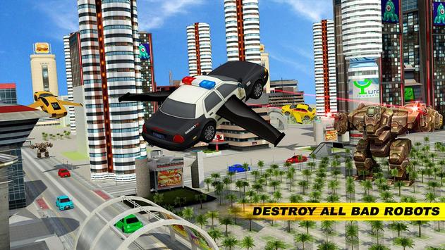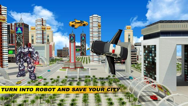 Do you like transforming robot games? Or may be flying Robot car simulator? Then this game is best for you, Get your normal Police Car and transform into real steel flying robot car and fly like an airplane in the sky of New York City, Make war with online enemy robots, fight with them and destroy all of these flying robots mec machine and save the humanity and be the hero of the futuristic city.