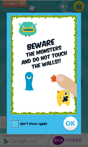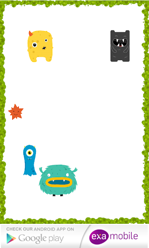 Run away from hungry Monsters - they want to catch you !!! Don't touch the Monsters and be as fast as you can. Post your score for all the world to see how far you can get. You can try as many times as you want - Good Luck! Have fun !!!