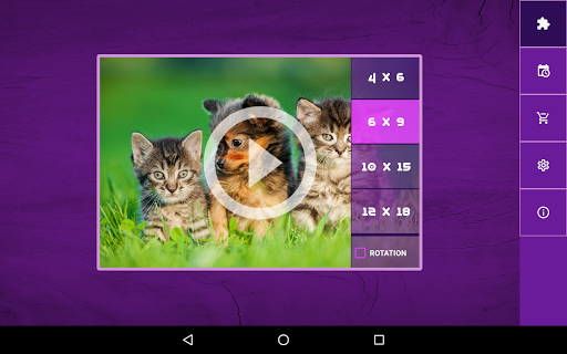 - Solve puzzles at 4 difficulty levels with the option to rotate pieces