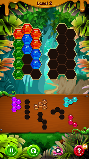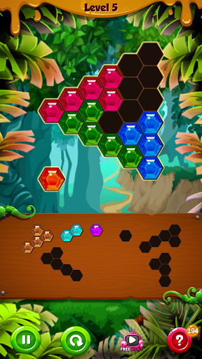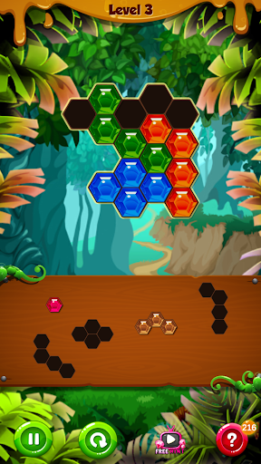 From hexa blocks who are still in first stage of action to hexagon sections that have entered the second stage of action and so on, this block puzzle is here to make things much more fun and exciting for you. Move from one puzzle games levels to the next one and improve your puzzle gaming skills. All you need to do is trace the hexagon puzzle presented in front of you. Drag and drop the different hexa blocks in the puzzle pain to match puzzle colors and solve the game.
