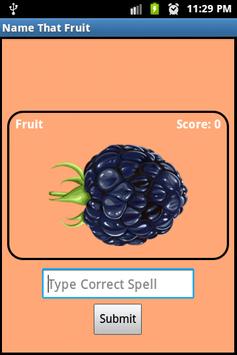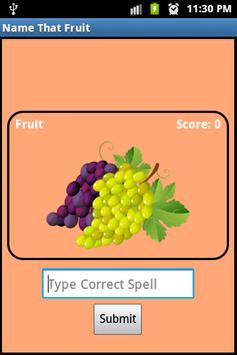 In Name That Fruit: game User can look at the Picture and then identify that Fruit picture and write spelling.