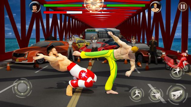 World capoeira fighting 2017 street rap fighter combat game is ready for karate fighting lovers. In capoeira kung fu there are lot of blockage techniques to defend yourself from enemy attack. Keep an eye on every move of your enemy that is fighting with you. Use punches and kicks with accuracy and quickly. Playing capoeira fighting 2017 is both a game and a method of practicing the capoeira movements in simulated combat. Several fighting combos to defeat your enemy, vital waves, martial arts, karate, kick boxing, kung fu, thousands of tricks and mixtures of kicks, punch, air strikes, multiple kicks, infinity punch knockouts air strikes and many more to discover. There are a lot of moves that you can perform with your strong & quick legs and arms. Capoeira fighters increase the excitement in every fighting competition. The fighting moves are priority and the music is a main ingredient in capoeira fighting, boost the fighter intensity high.