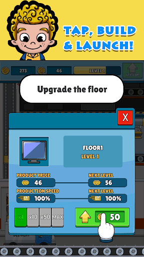 Tap, Build & Launch! Improve your machines & productions to make more money in your business management industrial and your empire idle cash income increases! Seize the chance to become a billionaire by automating the factory workflow of your business without the need to tap constantly. Get rich, purchase new machines, and buy buildings, invest cash, and become the greatest industrial manager tycoon boss ever in this addictive strategy simulator!