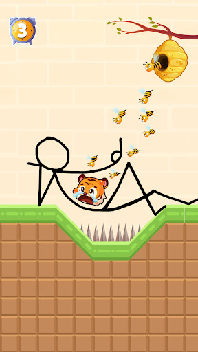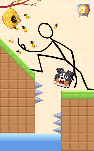 Watch out! The cute dog is in danger. The evil bees have come out to sting him. The only way you can save the dog is to draw a line to stop those bees.