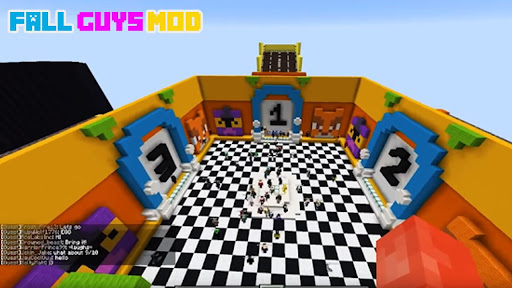 With mod fall guys you will have to fight with more than 100 players online on a Minecraft server. This application downloads and installs the map automatically in just two steps.