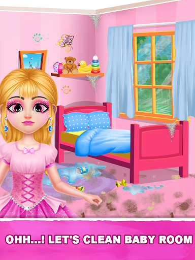 The family's fun day begins with the home cleaning of the baby girl. Alex does home clean for all the mess she created. Also, the food she spilled on her cheeks and the dining table is made neat and tidy.