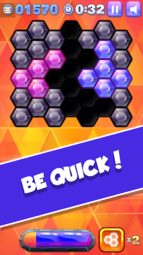 How far can you get in two minutes? Hex Blitz will challenge you over and over again to beat your own highscore and become the hex block puzzle master.