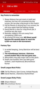 • We provide the best information after the research which helps users to create best fantasy teams.