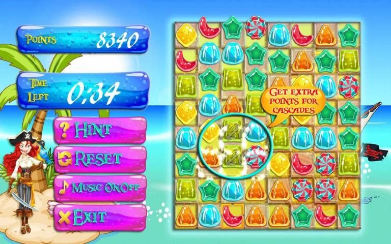 Become a pirate and plunder the 7 seas for delicious candy in this match 3 game.