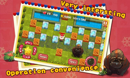 Cool running play tired, the bird flew away, crocodile bath, now you should play the new game "Bomberman Hero".A very interesting game of Bomber.At Christmas You play as Santa Claus,It is definitely a new and intersting experience. Tell about a story of a Santa Claus for adventure Myst, after the ups and downs along the way through the clutter and a series of hurdles, the Santa Claus defeat the monsters and BOSS. Santa Claus, cute and evil monsters, silly blankly BOSS, let you into a fairy tale of the times, plays the hero of a fairy tale, to defeat various monsters and BOSS. The game has joined the tower defense and RPG elements, and a variety of difficult hurdles challenge that await you, all kinds of skills to make you confused, all kinds of evil monsters make you tremble with fear, Come on for adventure now.Features:- Powerful store system to meet the needs of a variety ofplayers, and everything various props and skills.you can buy a lot of interesting props and skills to kill the monsters.- A clear picture of cute style includes elements of RPG, Tower Defense, Bomberman game, a new experience, fun for all.- Many checkpoints, the BOSS is waiting for you to challenge.