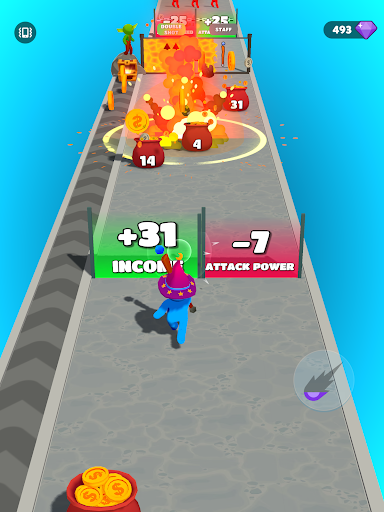 Blow up the money bags to get the skills.