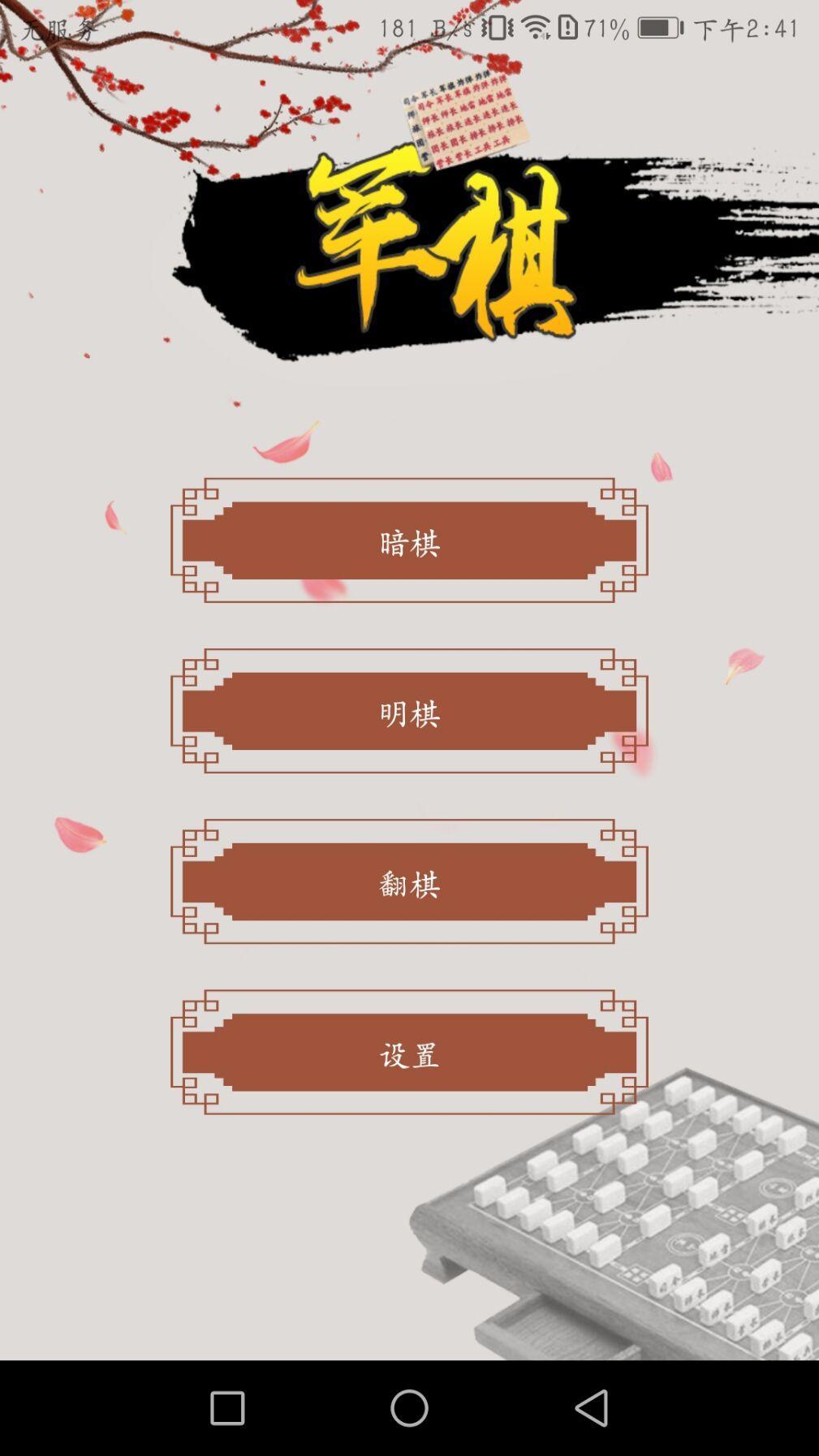 支持单机和联网模式 支持直接点击棋子落子 支持明棋,暗棋等玩法 军棋的吃子规则 司令>军长 >师长> 旅长 >团长> 营长 >连长 >排长>工兵 小棋遇大棋被吃,相同棋子相遇,则同归于尽 工兵能排除地雷,其它棋子不能排雷 炸弹与任何棋子相遇时同归于尽 军棋的获胜方法 杀光对方所有能移动的棋子则获得胜利;或者用工兵挖掉对方地雷后再用本方的棋子吃掉对方的军旗,也能获得胜利。