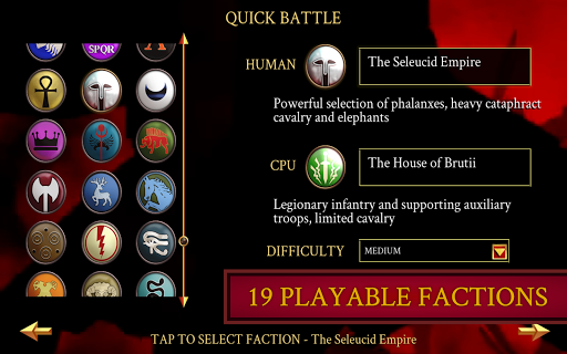Turn your screen into an exhilarating battlefield with thousands of troops, from legionaries, spearmen and archers to cavalry, chariots and war elephants.