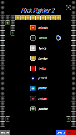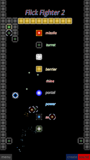 Flick Fighter 2 uses a flick gesture to control a small fighter that moves around the screen while the tap gesture shoots out laser bullets to hit roaming enemy Drones and stationary Turrets. This cell based game has destroyable and non-destroyable Barriers as well as exploding Mines. Powerups, Switches and Gateways add to the gameplay. A 1980s style demo runs on the splash screen at boot up to instruct the player how to play the game.
