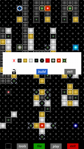 The level generator, Creator, enables the player to construct a level either cell by cell or by using a Build function to either play or add to. The levels, Fortresses, can be saved to the device's local internal storage.