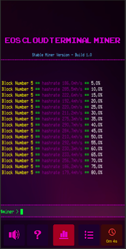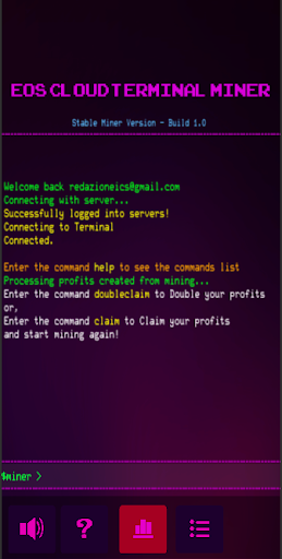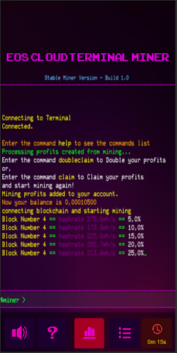 EOS TERMINAL CLOUD MINER is a simulator of real mining inside EOS blockchain!