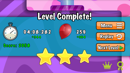 The faster you complete a level the higher your score will be. Capture stars to gain extra points. Creating too many balloons will hurt your score. The less balloons you create, the higher your score will be. If signed in, your score will be submitted to Google Play Games leaderboards, where you can compare your score with players from around the world. Here you can also view your in game achievements.