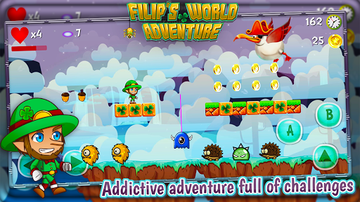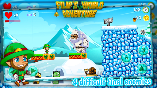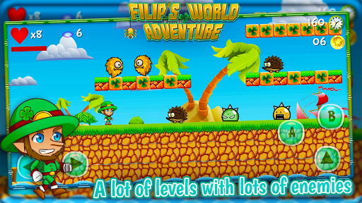 Start your Super Adventure. Filip's World offers well designed levels, different enemies, super bosses, Simple and intuitive controls,