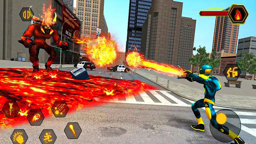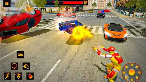 You can utilize all powers of police fire grand theft hero robot and bring out all rescue needs with command and authority of gangster crime city in grand theft superhero game. The crazy flying fire hero uses his extraordinary powers like flying, speed booster, fast running and jumping to complete the rescue mission as flying police robot.