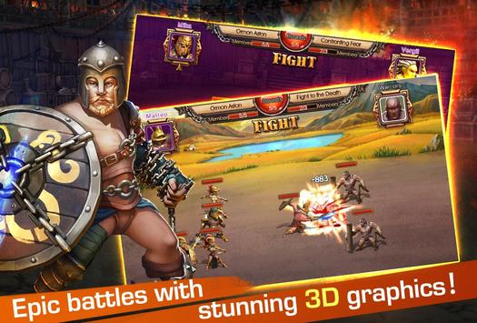 Form your team with the powerful allies, recruit different types of distinctive gladiators. You will have a chance to fight with the legendary gladiators!