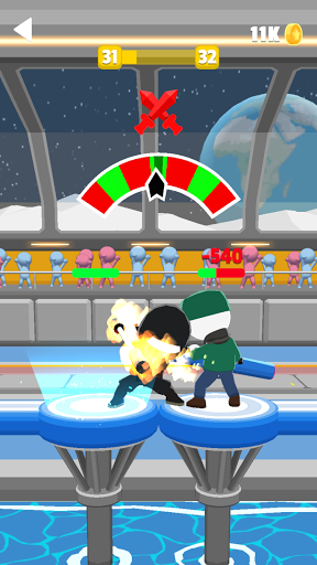 is a single-player app in the arcade fighter genre. A key feature is the simplified character control. During the fight, the user can see a scale divided into red and green zones. The player has to move the cursor and get into the green zone to attack the enemy.