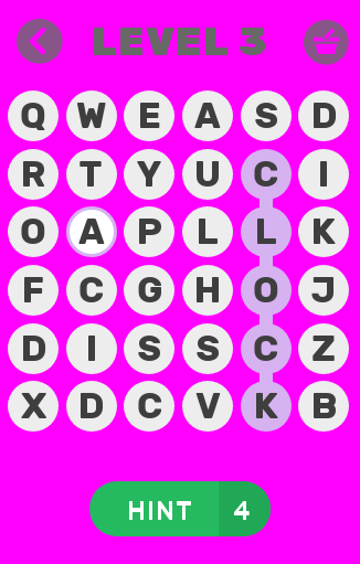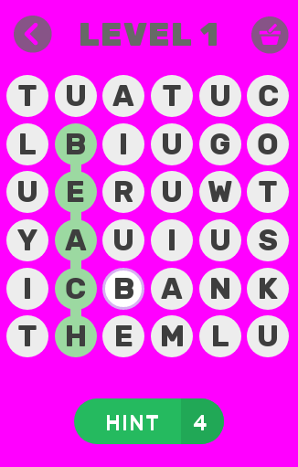 Is totally new game related to finding word each level you find 2 English word from up to down and left to right, each complete level you got 2 hint you can used within a game.