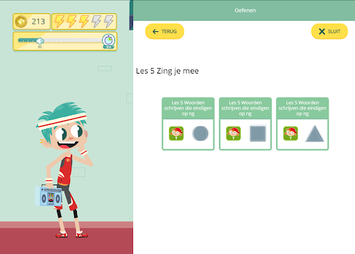 Bij elke les vindt je kind oefenmateriaal op zijn niveau waarmee hij aan de slag kan. Daarnaast zijn er ook heel wat driloefeningen om de leerstof beter te automatiseren.