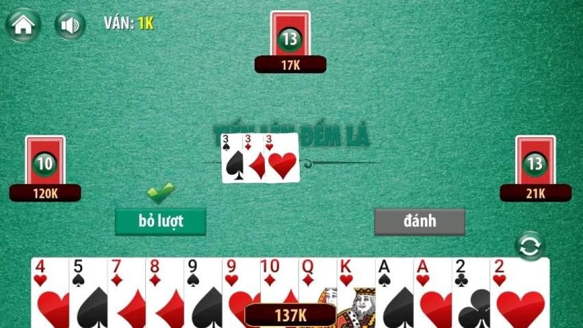 Mình xin giới thiệu với các bạn game Tiến Lên Đếm Lá phiên bản chơi với máy và luật tiến lên miền nam Việt Nam.