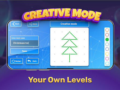 Besides predefined samples of object that kids need to build by drawing lines we have mode of operation when kids can create their own things. We have list of predefined tasks that are written as words that name objects for building. Also you can ask your children to build own objects using their imagination and mathematical thinking.