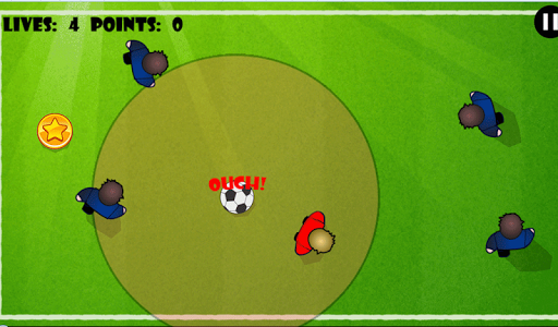 Flash Dribbler 2 is a simple but challenging 'one-touch' football game. The point is to keep the ball in your possession as long as you can by avoiding any contact with opponent players. The red opponent is smarter than blue ones, since he runs towards the ball and occasionally makes slides trying to touch you. Each time you avoid him, you get one point. You also get 5 points for every coin that you pick (they also appear from time to time).