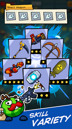 Choose to use high-damage weapons such as crossbows, bows, darts, shotguns, bazoka,... Or defend yourself with everyday items like fists, rocks, boxing, etc. You can use up to 6 weapons at the same time to survive the crowd. Playing with Boomerang survival, Kunai survival, Mystic Harp survival, Lightsaber survival,… hundreds of remarkable weapons. Upgrade through battles, combine and reinforce different skills, and fight your way to be the strongest in the survival game!