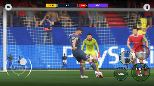 t has intuitive flick-to-pass-and-kick gameplay, where you would need to sweep your fingers across the ball to drive, curve, and power it past the defenders. It is powered by an intelligent AI, which gives way for realistic freedom, powerful simulation, and accurate ball physics.