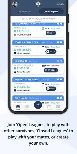Players pay an entry fee (determined by the league creator aka the ‘Captain’) to join and all the entry fees make up the prize pot. Whichever player lasts the longest in the league without losing, wins the pot.
