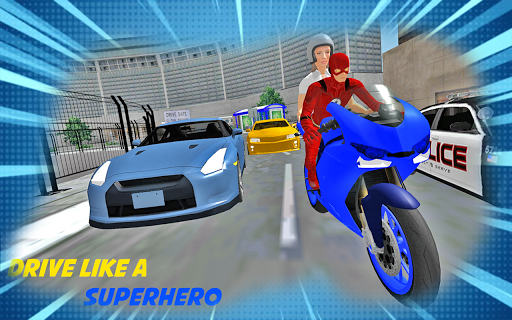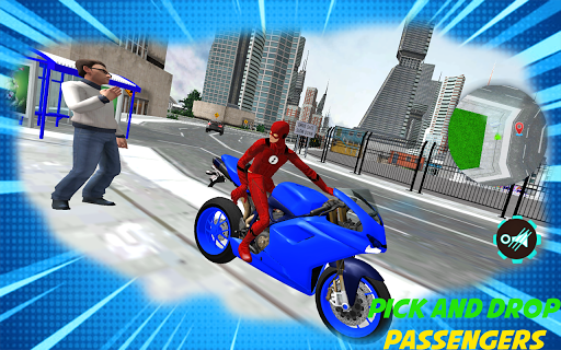 Welcome to the new idea of flash speed superhero bike taxi game simulator. Now its time to drive superhero bike in case of emergency like accidents in the city and your duty is as superhero you have to save all lives and solve the problems of common peoples.