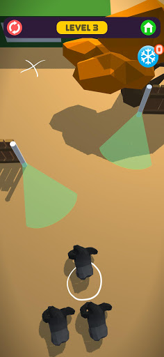 ⭐ Don't get caught by obstacles and guards! Draw the right path and send the animals one by one. When they reach the target, you have passed this difficult level!
