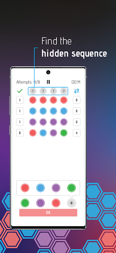 This is a puzzle-strategy game where players need to guess a sequence based on hints telling the player if the elements of the sequence is misplaced or not. There are several levels making the game more challenging with more positions and colors increasing the possibilities.