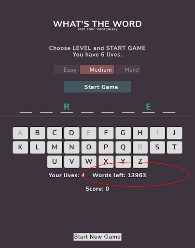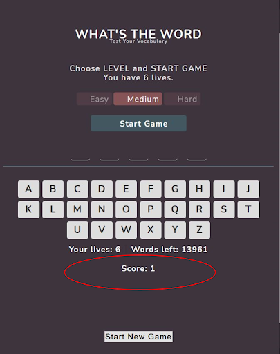 • Tracks score of words guessed correctly