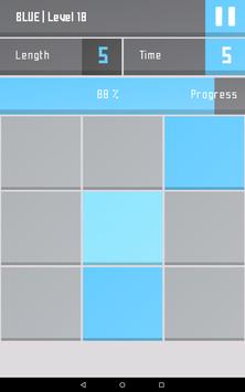 Sequences between 2 and 7 squares to memorize with different characteristics in each level.