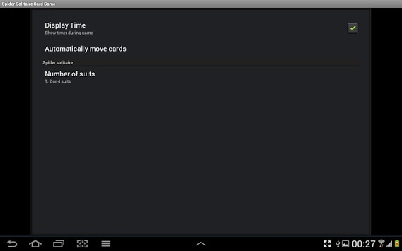 Spider Solitaire Options: