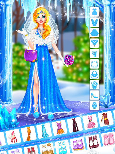 t's Ice Princess Magical Makeup time! Beat royal fashion dress up to the ice beauties. Give your clients the wedding makeovers ever. Enjoy amazing winter princess dress up games lots of fun activities of doll makeup & dress up. Style your brides dresses, fancy hairstyles, shoes, jewelry, flowers bouquet, head accessories, bags and much more. Girls games help you to make amazing princess games.