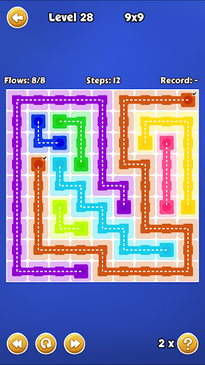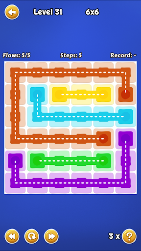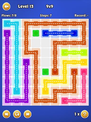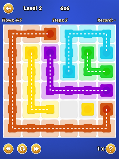 Connect the dots of the same color by creating a pipe. Match all colors, filling the board completely.