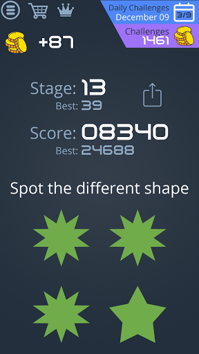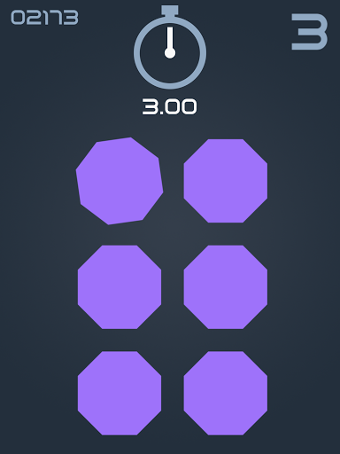 Multiple shapes are displayed on the screen, tap on the only different one. But you must do it in less than 3 seconds! How long will you stay?