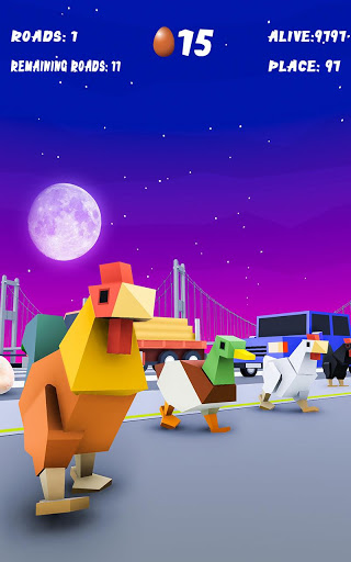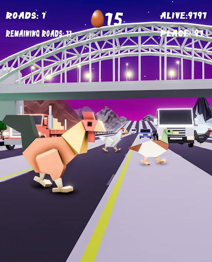 your crossy chicken does not have a gun or invader shooter, your chicken is a harmless tiny innocent runner who just needs an escape from the brutal world of cages and butchers. your screaming chicken can only run to escape and save her his life. But this scary world of cars and heavy traffic ride vehicles is a great hurdle. You are the sole hope for this innocent chicken run. Keep the chicken running and take her to other side of the road. where 100 of other chicken and duck going to get rescued. Become the one who will be winner not loser to cross road.